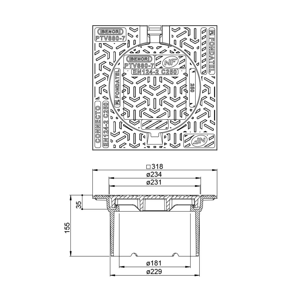 | Clear opening diameter Ø (mm) | 250mm |