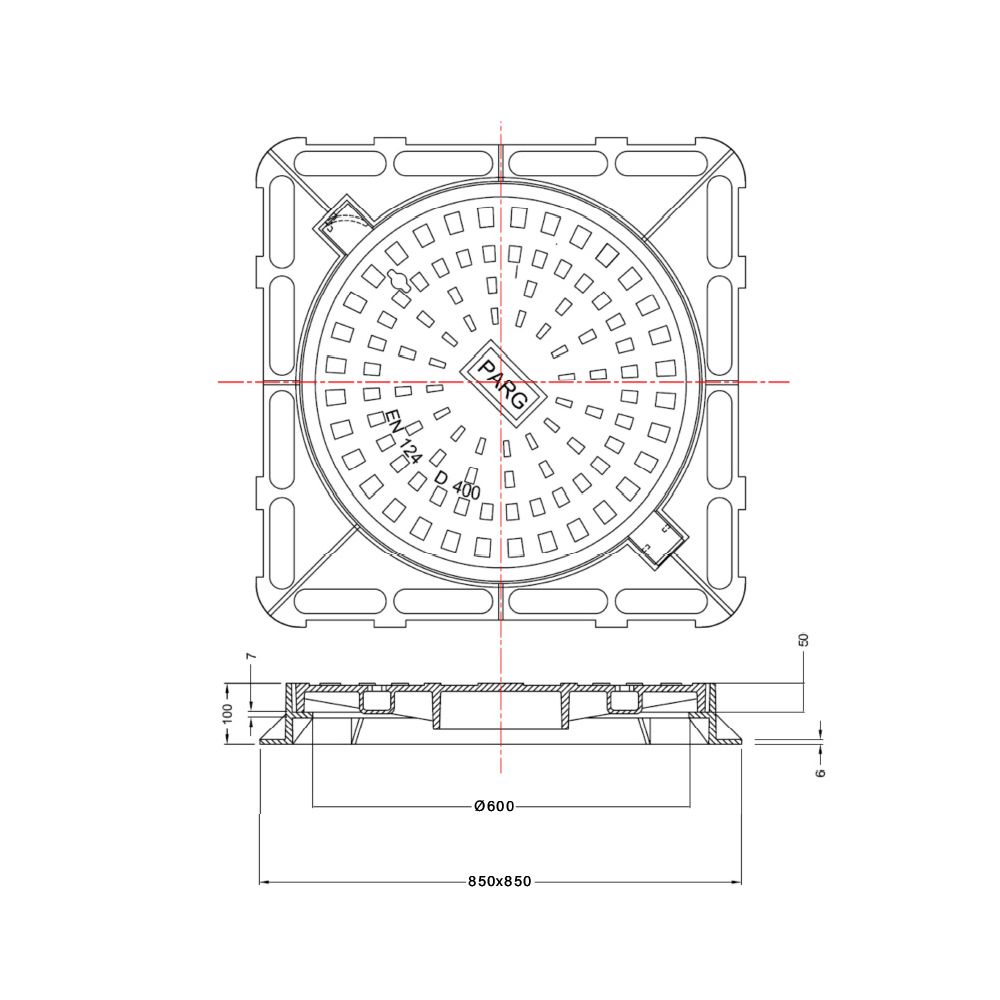 CAST IRON COVER D400 FS=850X850 CO=600 EN124