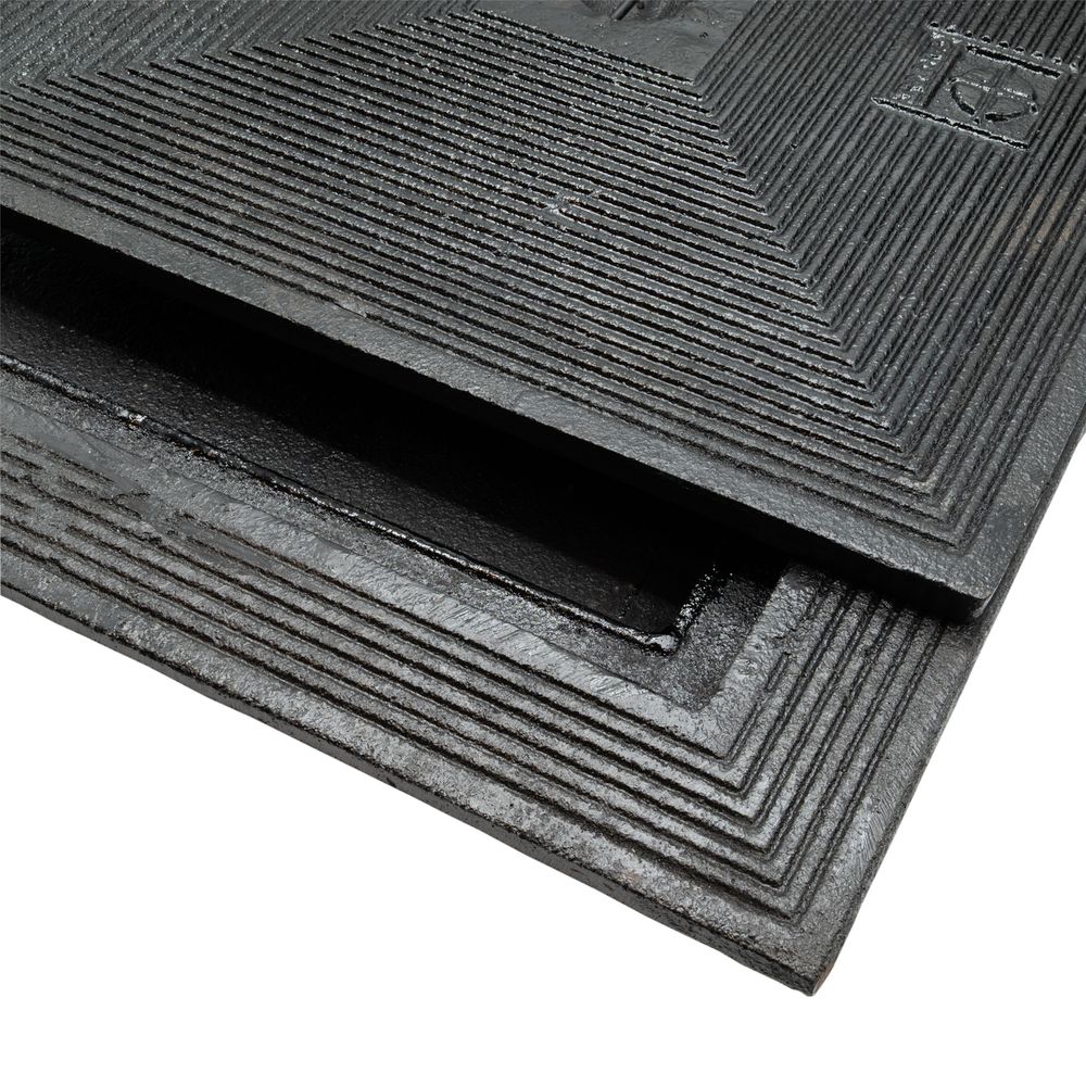 Cast iron cover with tongue-and-groove locking for both covers. Equipped with a central lifting recess. |