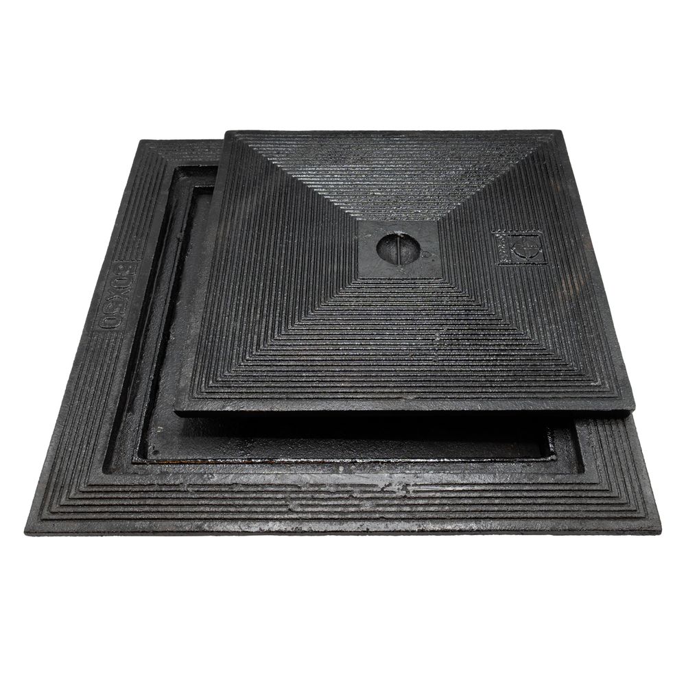 Cast iron cover with tongue-and-groove locking for both covers. Equipped with a central lifting recess. |
