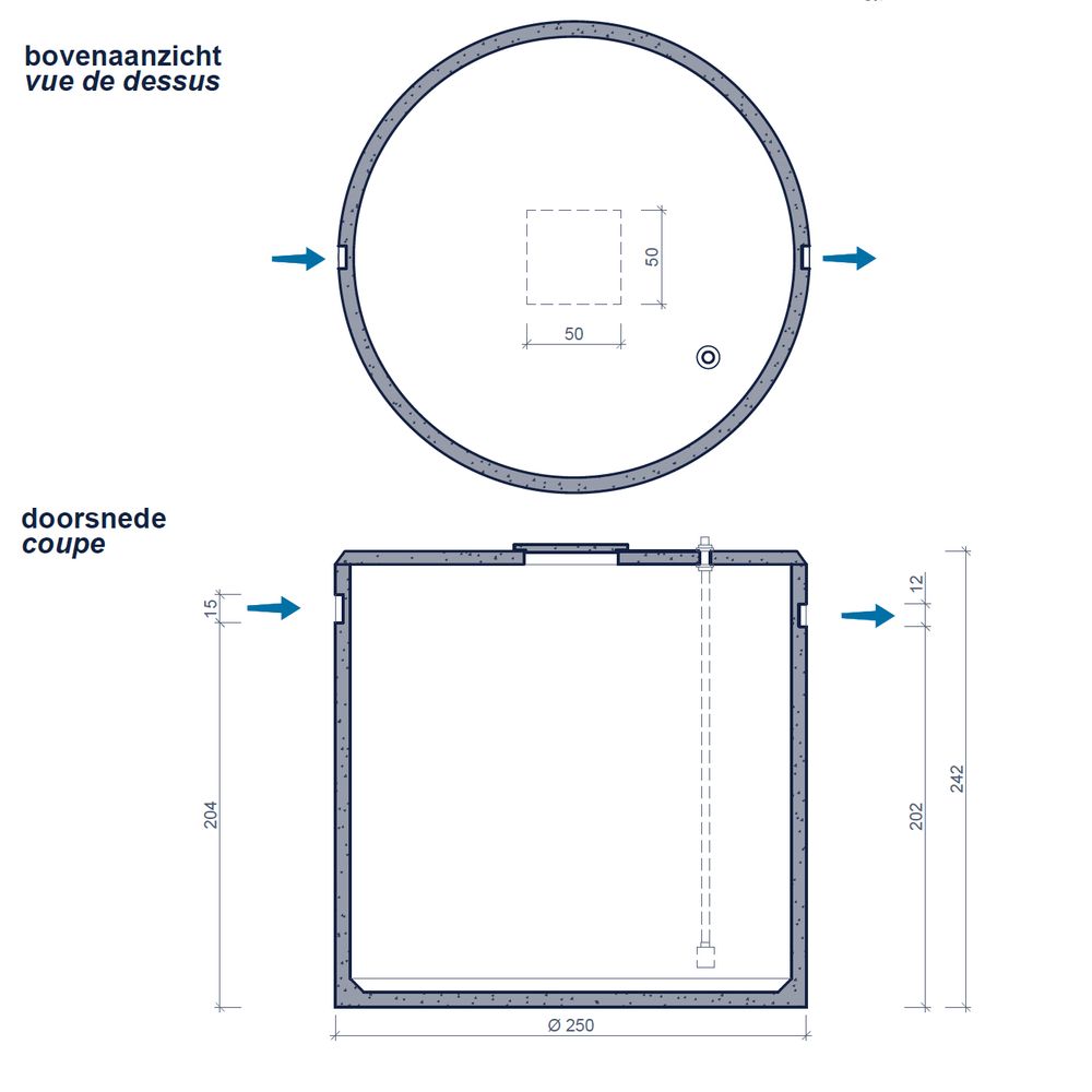CONCR. RAINWATER TANK 10000L DIA250XH242CM W/ COV.