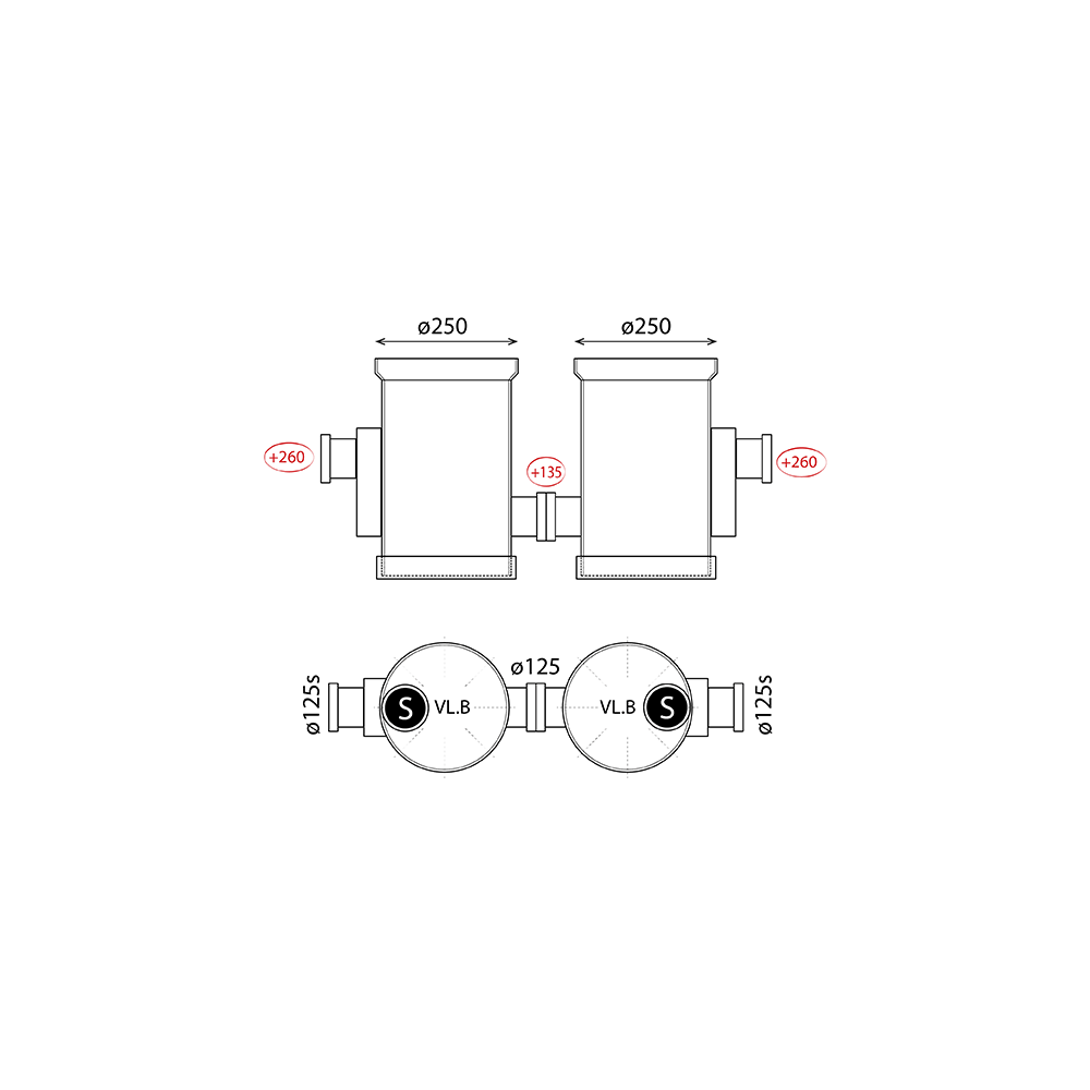 PVC CHAMB. FB 250MM A/1X125SP B/1X125SP GREASE COL