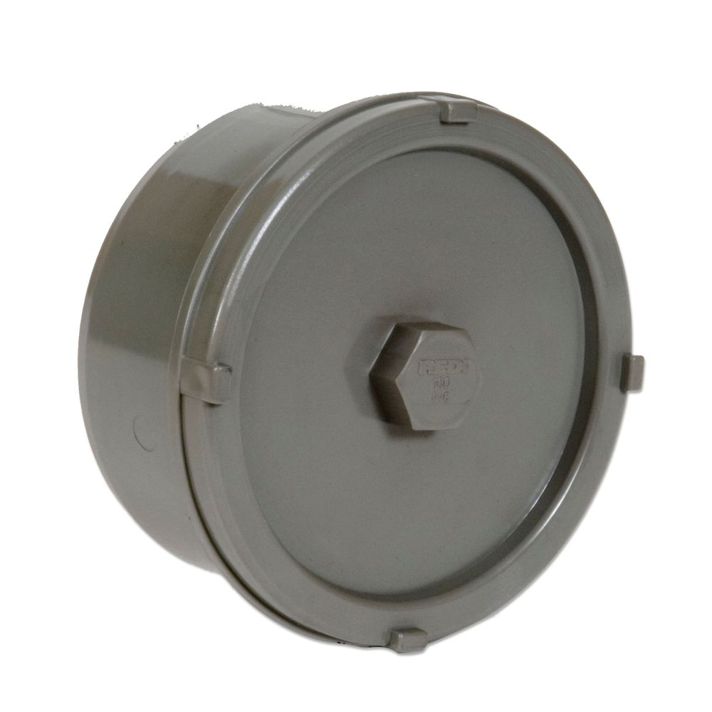 A PVC end cap with a screw-on cover. This end cap ensures that the pipe remains accessible at all times for inspection and maintenance. |