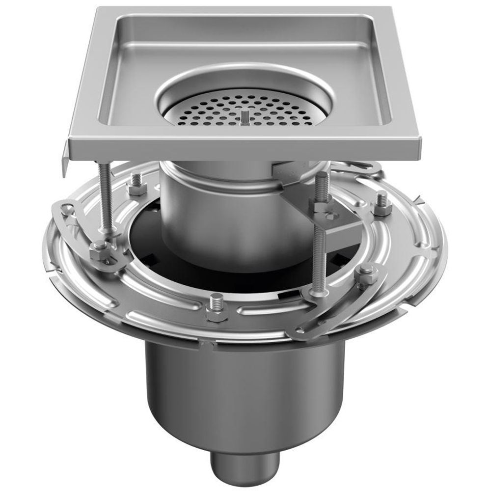 (In detail)The drain sump and grating are manufactured from stainless steel grade AISI 304 / EN 1.4301. Upon request, versions in AISI 316L / EN 1.4404 are also available. The type of drain sump execution depends on the load class, the flow rate (amount of water to be drained) and the design parameters. The floor drain sumps are produced from stainless steel sheet with a thickness adapted to the relevant type. All components are argon-welded and subsequently pickled by immersion, ensuring a high-quality finish of the weld seams. Stainless steel drainage in accordance with EHEDG DOC 44, EN 1253, EN 1672 and EN 14159.