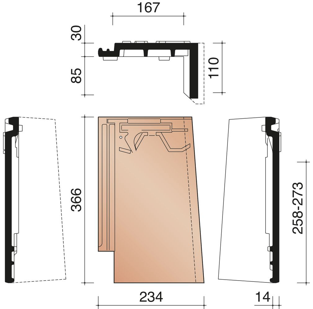 VAUBAN ANTHRACITE MATTE RIGHT GABLE TILE