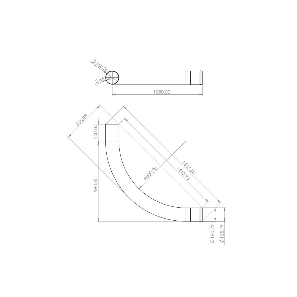 | Rayon de courbure (mm) | 800 |