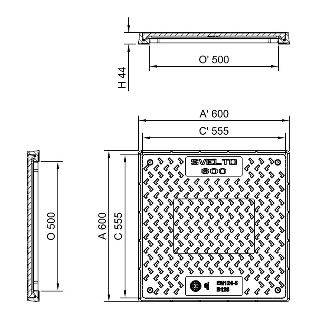 SVELTO PLUS EXT=590X590 OL=500X500 B125 44MM