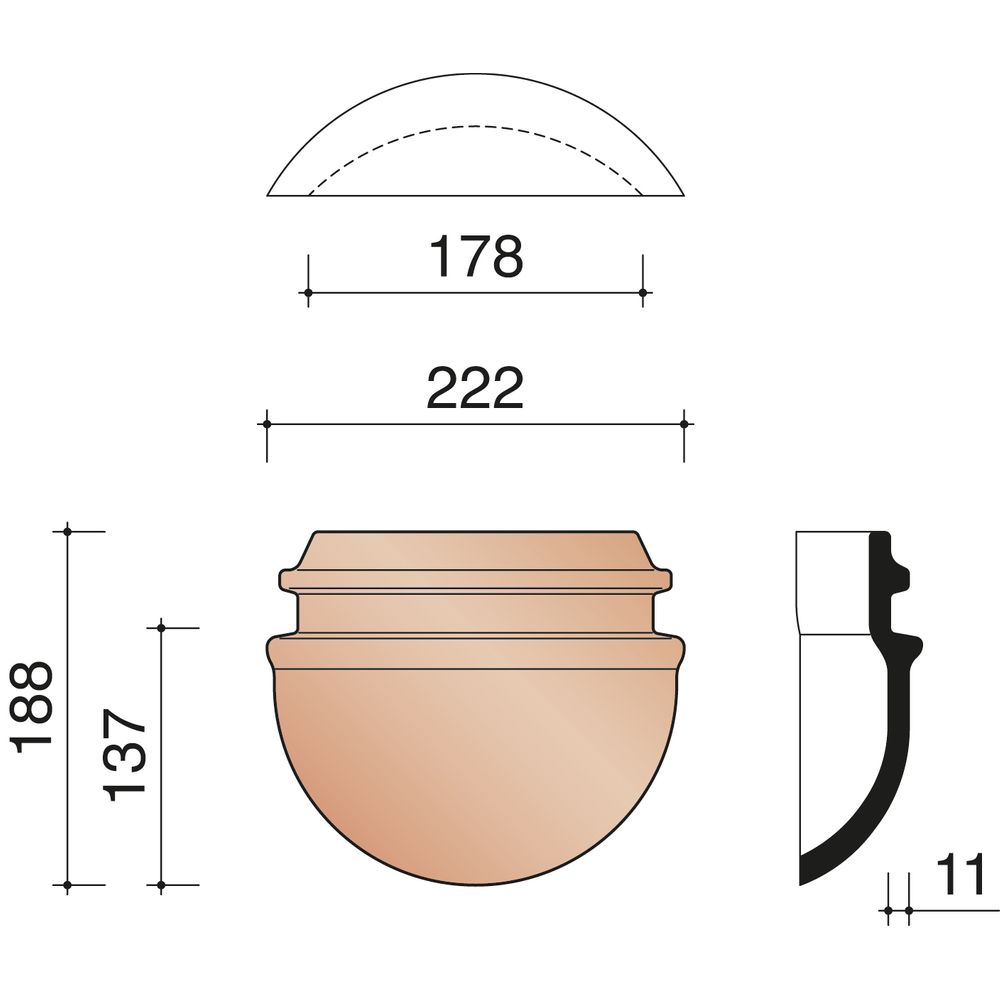 WIE RUSTIQUE ARÊTIER DEMI-RONDE DE DÉBUT 190MM