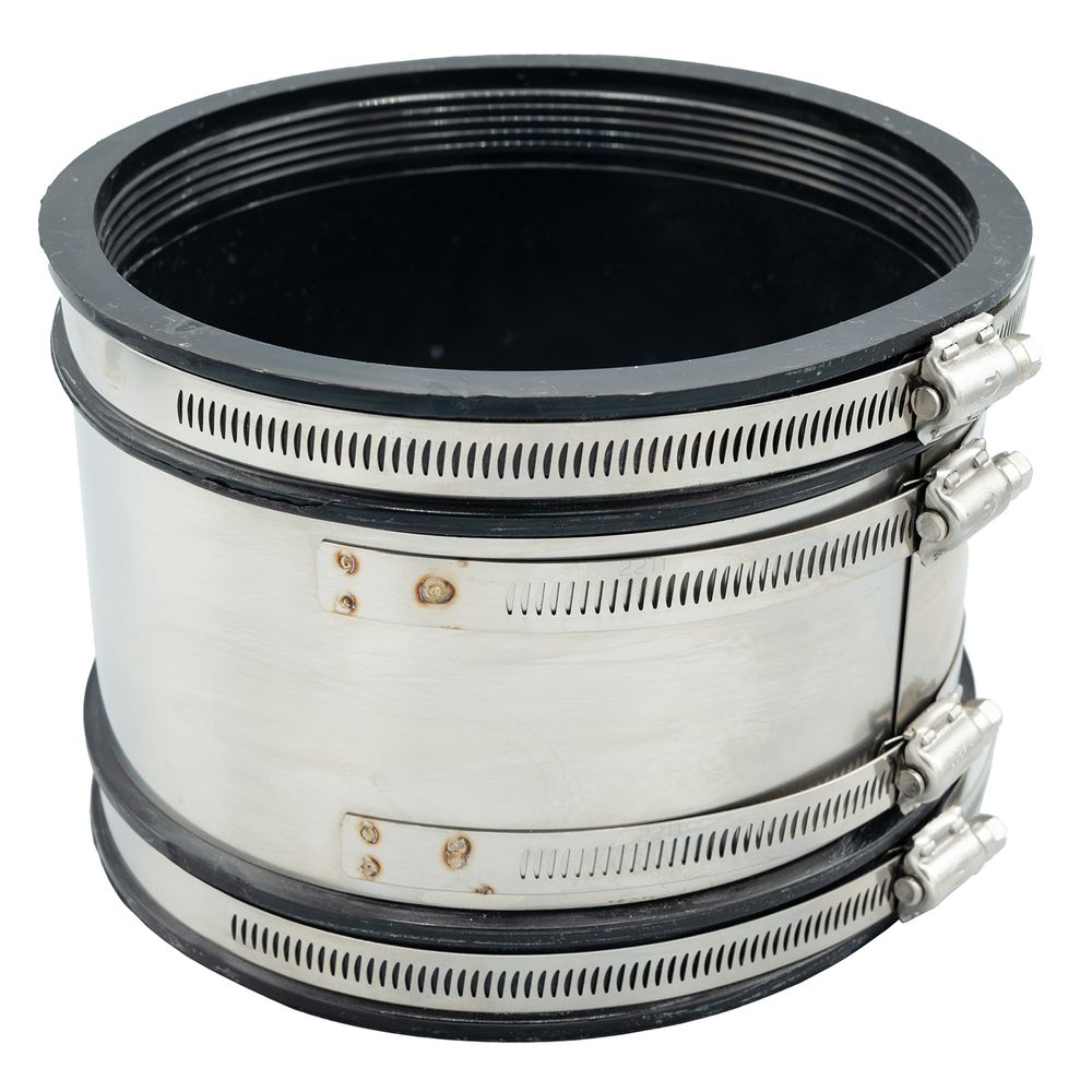 De Flexseal koppelingen zijn geschikt voor het koppelen van verschillende soorten leidingen, van verschillende aard en verschillende diameters. Standaard uitvoering met EPDM rubber 8 mm en steun- en spanbanden in roestvrij staal. |