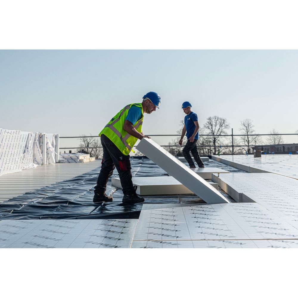 Utherm Roof L is een PIR isolatieplaat voor platte en licht hellende daken. Deze plaat is aan beide zijden bekleed met een meerlaags gasdicht laminaat en is ook geschikt voor verlijmde toepassingen.